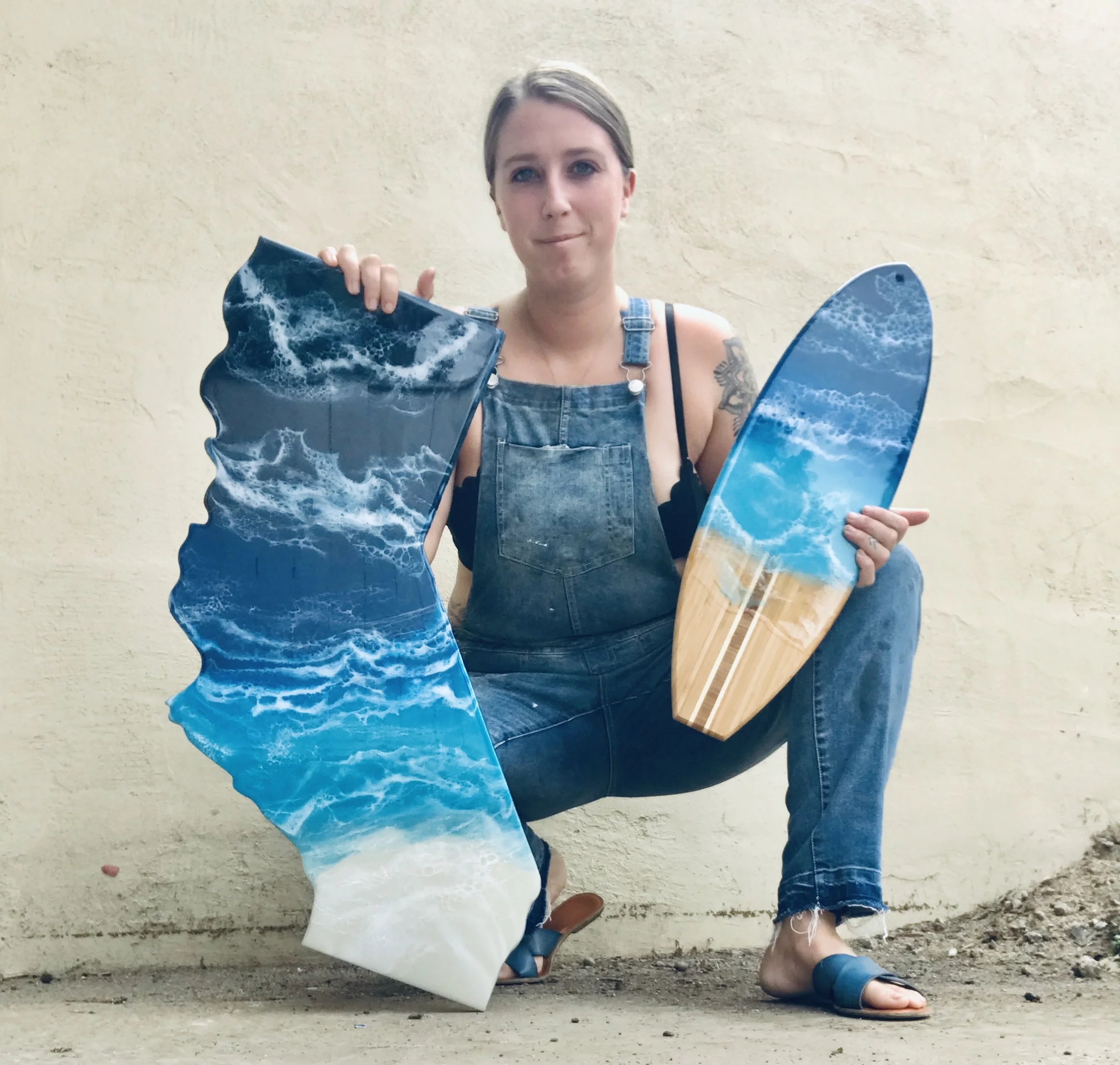 Although her formal education was a focus on photography, she expressed her creativity through multiple outlets, one being painting, specifically fluid art. Alyssa is a self taught fluid artist, who has been painting with resin since 2017. Having lived along the California coast her whole life, her inspiration is drawn from the ever changing ways of the ocean, as well as other natural influences.
