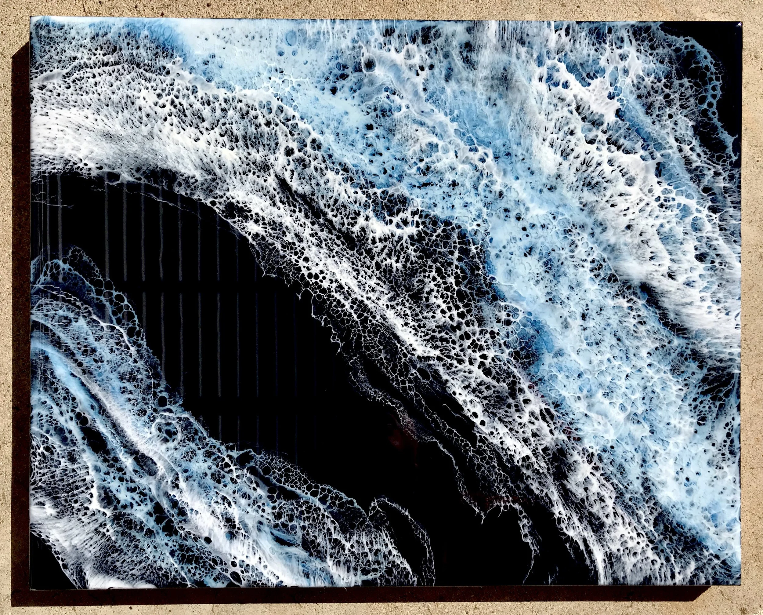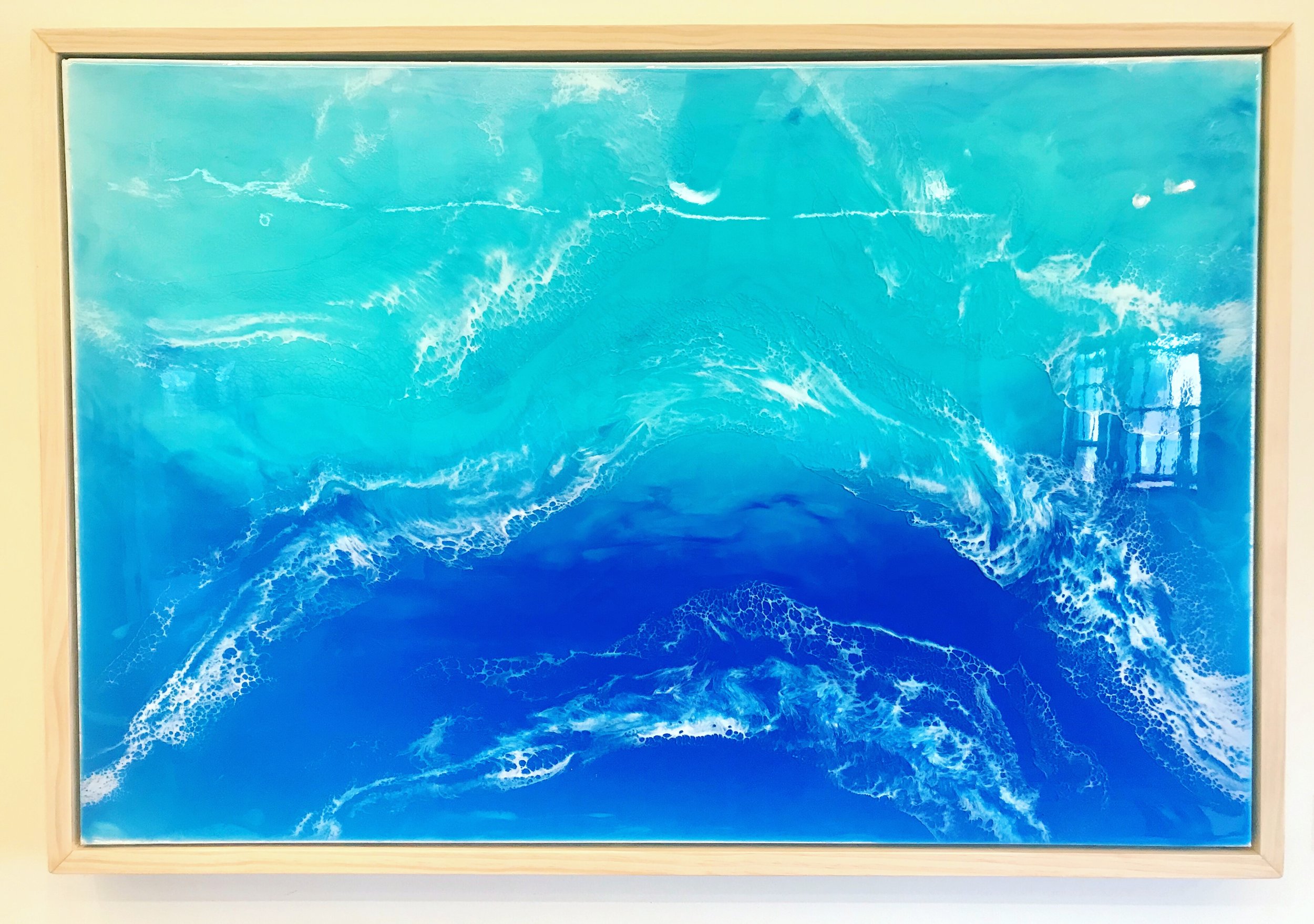 2 ft. x 3 ft. cradled wooden panel, mixed media, resin, polymer clay rocks.